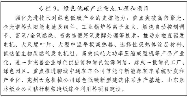 ?。┚G色低碳產(chǎn)業(yè)。順應(yīng)新能源技術(shù)應(yīng)用系統(tǒng)化、模塊化、分布式方向,優(yōu)化風(fēng)能、太陽能布局,推動(dòng)生物能的推廣應(yīng)用。把握全球新能源汽車輕量化、智能化的科技發(fā)展趨勢(shì),完善地方性標(biāo)準(zhǔn)規(guī)范和政策體系,推進(jìn)純電動(dòng)、混合動(dòng)力及低能耗汽車技術(shù)創(chuàng)新。加快節(jié)能環(huán)保制造業(yè)與服務(wù)業(yè)聯(lián)動(dòng)發(fā)展,促進(jìn)形成綠色產(chǎn)業(yè)結(jié)構(gòu)、綠色增長方式和綠色消費(fèi)模式,助力“生態(tài)山東”和“綠色山東”建設(shè)。到2020年,建設(shè)30個(gè)循環(huán)經(jīng)濟(jì)示范基地、300個(gè)示范企業(yè),培育發(fā)展一批新能源和節(jié)能環(huán)保企業(yè)。