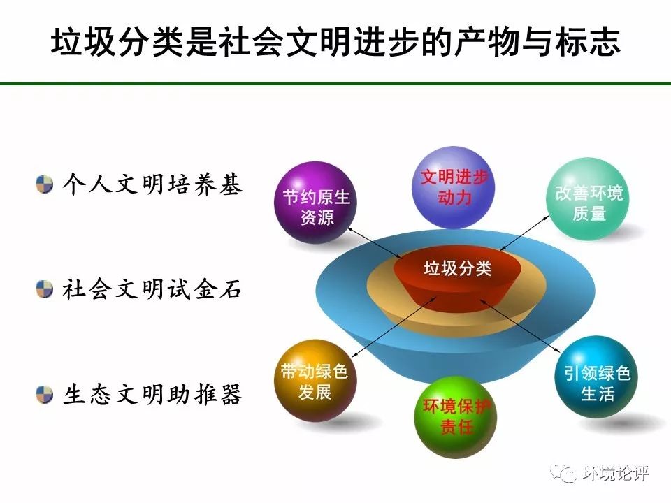 垃圾分類是垃圾處理的一個(gè)前端環(huán)節(jié),有助于提升垃圾處理系統(tǒng)效能與二次污染控制水平,但其意義遠(yuǎn)不止于此。環(huán)境保護(hù),人人有責(zé),也需要人人盡責(zé)。對個(gè)人而言,不管有多么高遠(yuǎn)宏大的環(huán)保理念,都可以從最容易入手的垃圾分類開始踐行。作為現(xiàn)代社會(huì)公民,如果連垃圾分類這點(diǎn)小事都不肯做或做不到,空談多少環(huán)保理念又有什么意義呢;反之,如果連垃圾分類這種瑣事都能堅(jiān)持不懈做好,還有什么事情是做不好的呢?垃圾分類自然離不開教育。葉圣陶說過,“教育是什么?往簡單方面說,只有一句話,就是養(yǎng)成良好的習(xí)慣”。垃圾分類投放就是居民履行環(huán)境責(zé)任、踐行環(huán)保理念、培養(yǎng)良好習(xí)慣的有效載體。與此同時(shí),垃圾分類考驗(yàn)城鄉(xiāng)精細(xì)化管理的水平,也是城鄉(xiāng)精細(xì)化管理的重要抓手。僅汲汲于垃圾處理本身來看待和推行垃圾分類,推崇用“機(jī)器”或“市場”代替居民的身體力行,是一種典型的短視行為,因?yàn)槔诸悓幚肀旧淼脑鲆?,完全可以通過先進(jìn)的技術(shù)手段更為快捷高效地實(shí)現(xiàn),但居民個(gè)人、城鄉(xiāng)社區(qū)卻因此而失去了提升文明程度的載體和抓手。