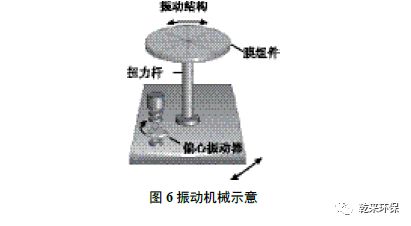 整個(gè)膜組件被置于一組振動(dòng)機(jī)械上。振動(dòng)機(jī)械利用馬達(dá)和偏心軸承,產(chǎn)生約50 Hz/s 的振動(dòng)頻率傳到整個(gè)膜組,使膜面產(chǎn)生振動(dòng)。膜面通過往復(fù)振動(dòng),在膜面產(chǎn)生強(qiáng)大剪切力,鹽分難以停留在膜面上,可有效防止膜面產(chǎn)生表面結(jié)晶。在高鹽濃度下,結(jié)晶和未結(jié)晶的鹽分被推到濃液口外排。振動(dòng)機(jī)械示意見圖6。