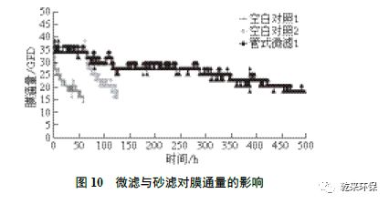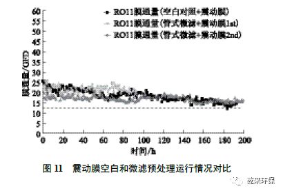 圖11 為震動(dòng)膜空白和使用兩次微濾預(yù)處理的運(yùn)行結(jié)果對(duì)比。