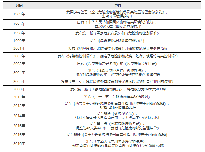 危廢相關(guān)政策體系形成時(shí)間順序表