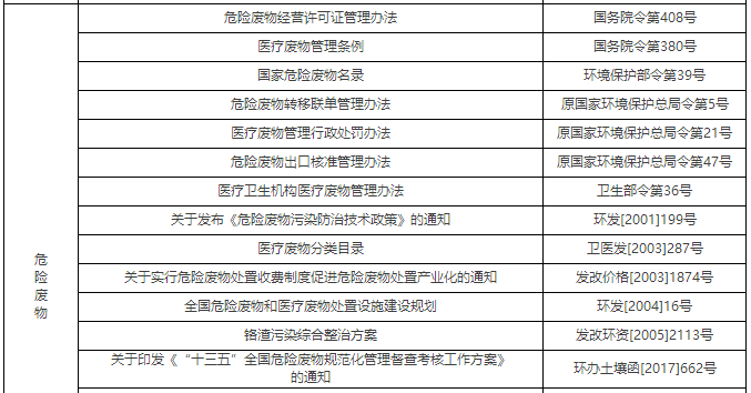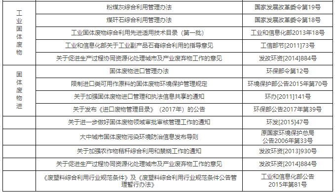 我國(guó)現(xiàn)行固體廢物污染防治主要政策法規(guī)