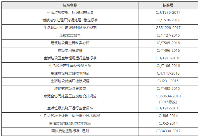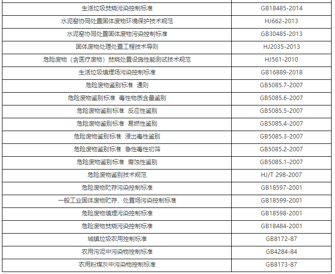 我國(guó)現(xiàn)行固體廢物污染防治主要標(biāo)準(zhǔn)規(guī)范