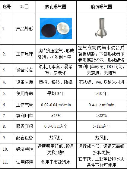 3. 旋流曝氣器與微孔曝氣器對(duì)比