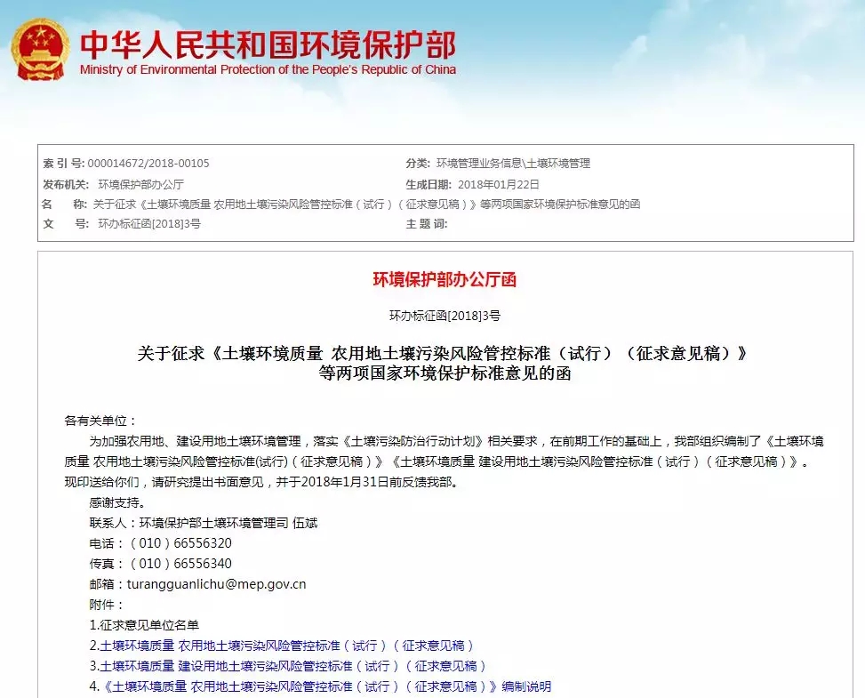 環(huán)保部辦公廳近日發(fā)布關(guān)于征求《土壤環(huán)境質(zhì)量 農(nóng)用地土壤污染風(fēng)險(xiǎn)管控標(biāo)準(zhǔn)(試行)(征求意見(jiàn)稿)》等兩項(xiàng)國(guó)家環(huán)境保護(hù)標(biāo)準(zhǔn)意見(jiàn)的函