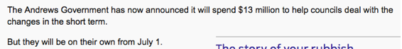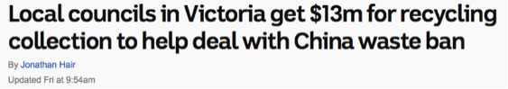 那些受到中國 “洋垃圾“ 禁令影響的市政廳可以暫時喘一口氣了,日前,維州政府愿意出資1300萬澳元幫助他們管理垃圾。但是這類援助只持續(xù)到今年7月1日。