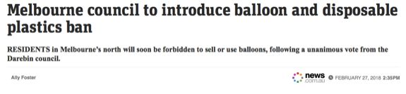 日前,作為推動環(huán)保的一部分,墨爾本一市政廳將實行氣球和一次性塑料禁令。到那時,墨爾本三個區(qū)的商戶和居民將很快被禁止出售和購買氣球以及其他塑料制品,包括一次性食物餐盒和杯子。