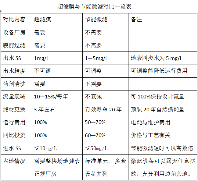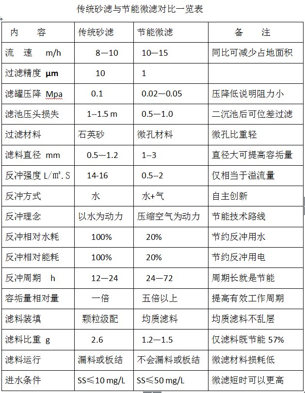 節(jié)能微濾技術(shù)研究借鑒了傳統(tǒng)砂濾和超濾優(yōu)勢(shì),摒棄了不足之處,用于一級(jí)A再提標(biāo)濾除懸浮物是可行的。出水懸浮物指標(biāo)可以達(dá)到小于5mg/L,既可以是新建也可以是改造升級(jí),具有推廣可操作性。