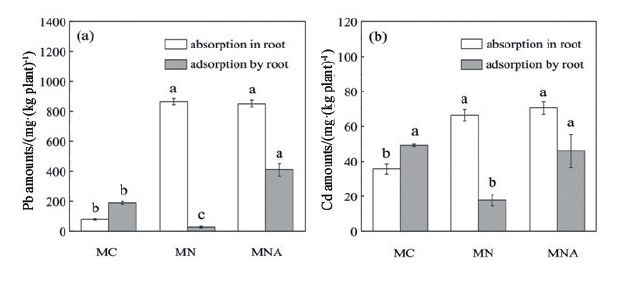 圖6不同化學(xué)試劑對(duì)植物根吸附和吸收Pb和Cd的影響