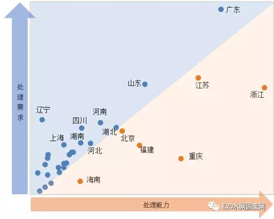 2. 供給不足區(qū):山東地區(qū)需求旺盛,處理能力已處上游但仍需擴充