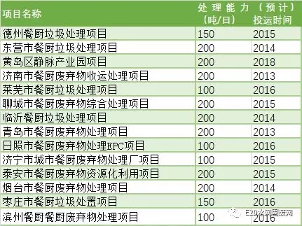 圖表 4 山東省餐廚垃圾處理項目統(tǒng)計