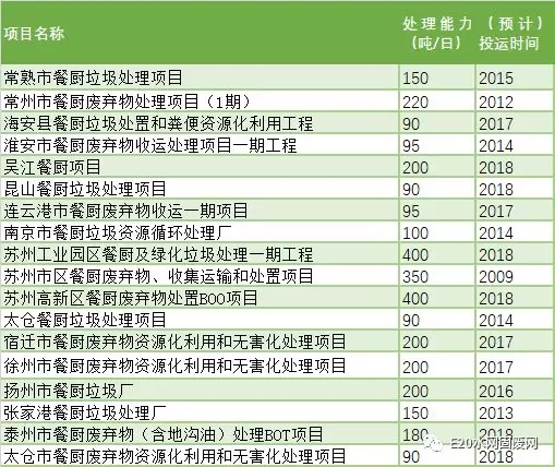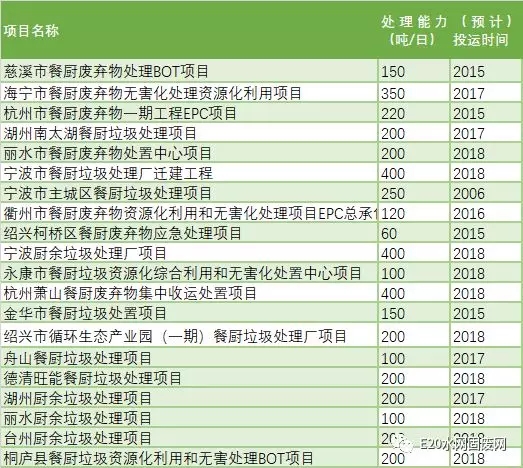 據E20研究院統(tǒng)計,截止到2017年11月,江蘇省已建(含在建)餐廚垃圾處理項目共計18個,設計處理能力為3300噸/日。浙江省則建有餐廚、廚余垃圾處理項目20個,處理能力達4300噸/日。