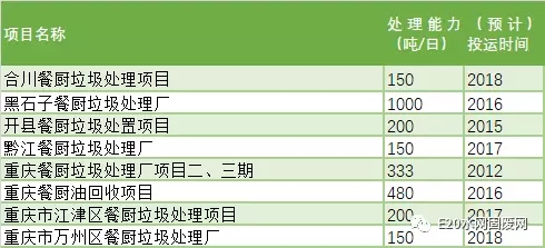 圖表 7 重慶市餐廚垃圾處理項目統(tǒng)計