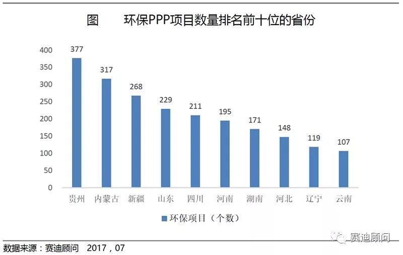 從地域上看,我國西部地區(qū)包括貴州、新疆、四川、云南等省份環(huán)保PPP項(xiàng)目相比東部省份較多。