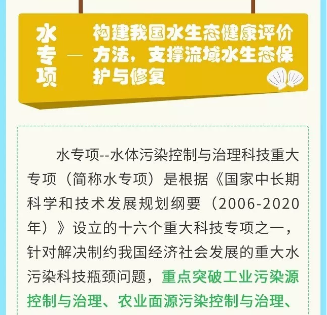 水專項——水體污染控制與治理科技重大專項(簡稱水專項)是根據《國家中長期科學和技術發(fā)展規(guī)劃綱要(2006-2020年)》設立的十六個重大科技專項之一,針對解決制約我國經濟社會發(fā)展的重大水污染科技瓶頸問題。