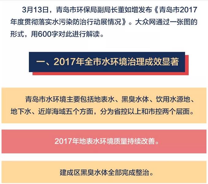 水污染防治行動展情況》。青島市水污染防治情況如何,大眾網(wǎng)通過一張圖的形式,用600字對此進行解讀。
