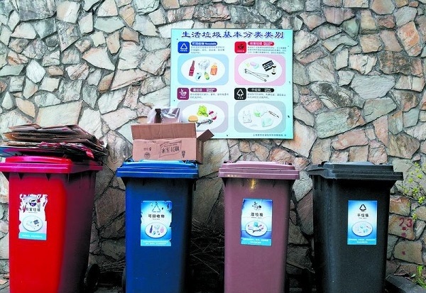 圖說:小區(qū)內(nèi)設置了分類投放垃圾桶,但居民垃圾分類投放意識仍需加強來源/新民晚報記者 孫中欽 周馨 劉歆