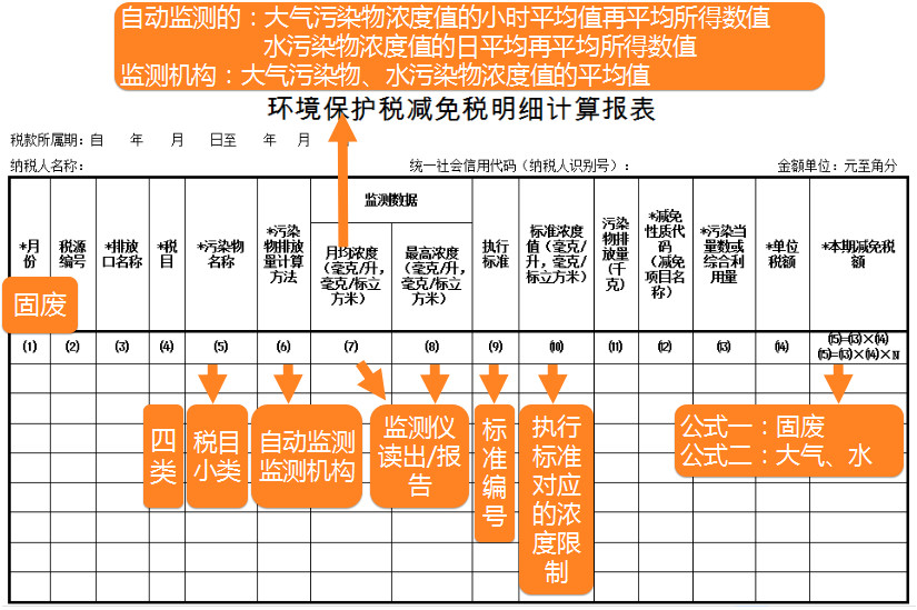 A表有專門的減免稅計(jì)算表,需先填減免“污染當(dāng)量數(shù)”或綜合利用量,后填“本期減免稅額”