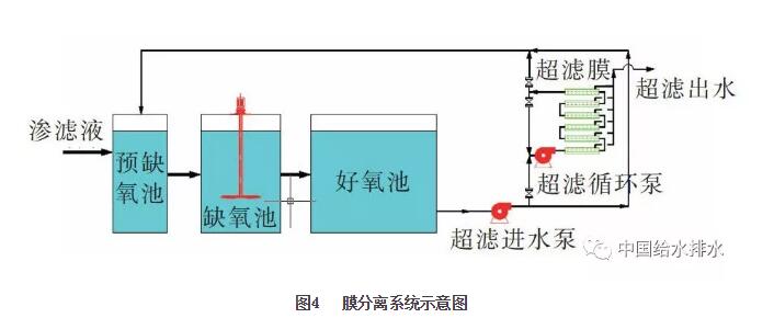 在許多垃圾滲濾液處理工程中,MBR系統(tǒng)采用管式膜超濾分離系統(tǒng),超濾進水泵由好氧池末端取水,進入管式膜濃縮又回流到生物池內(nèi)。將含有硝酸鹽的超濾回流管接至缺氧池進水端,同樣可以起到混合液內(nèi)回流的作用,提高脫氮效率、節(jié)省能耗。