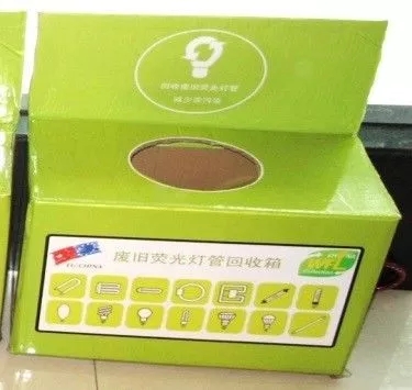 對(duì)廢熒光燈管有回收義務(wù),銷售新產(chǎn)品時(shí)可一對(duì)一地回收?qǐng)?bào)廢產(chǎn)品,并及時(shí)送到規(guī)定的授權(quán)處理機(jī)構(gòu)進(jìn)行處理。使用專用的收集箱收集,分類存放于暫存處,并與其他垃圾分類隔離。