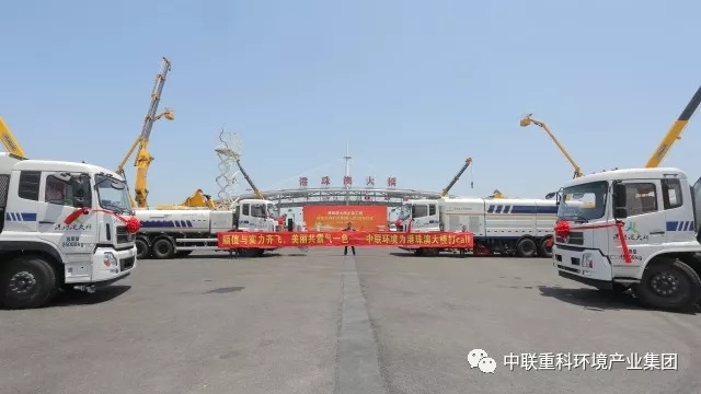 ▲中聯(lián)環(huán)境污水循環(huán)洗掃車將擔(dān)負(fù)起守護(hù)港珠澳大橋的光榮使命