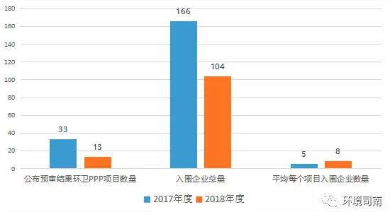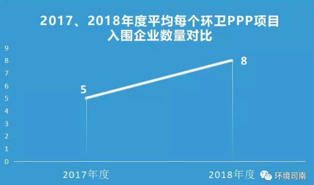 2018年度,平均每個(gè)環(huán)衛(wèi)PPP項(xiàng)目有8家入圍企業(yè)/聯(lián)合體: