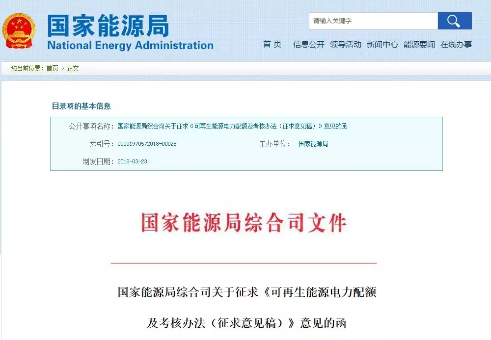 從去年十九大報告到今年兩會政府工作報告,中央多次明確表示要在生態(tài)文明的框架下實現(xiàn)能源生產(chǎn)和消費的革命,到今年兩會一結(jié)束,國家能源局立即發(fā)布《可再生能源電力配額及考核辦法征求意見稿》,配額制在醞釀十年之后,總算與市場見面了。