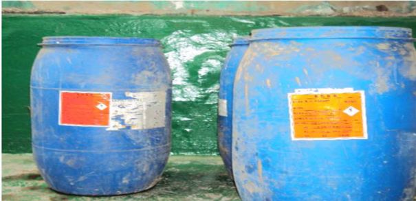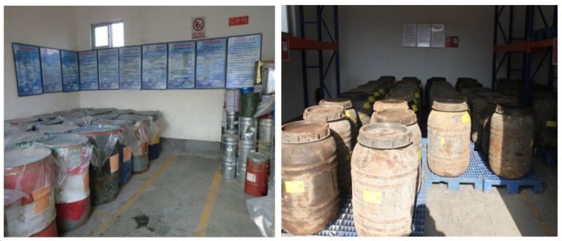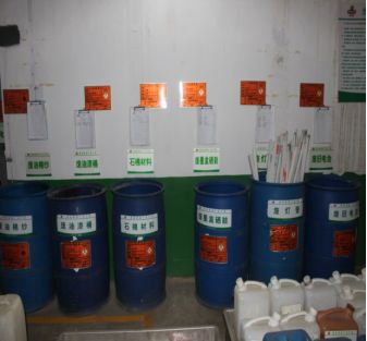 2、危險廢物包裝容器上標識明確;危險廢物按種類分別存放,且不同類廢物間有明顯的間隔(如過道等)。