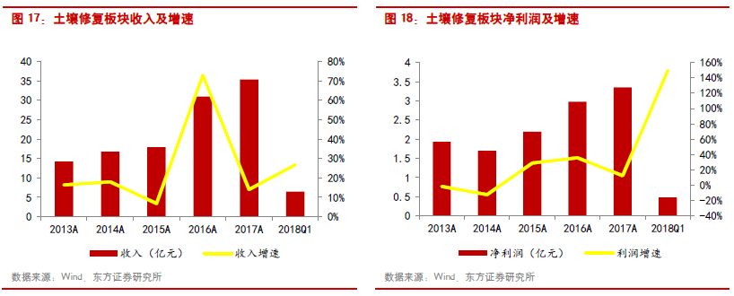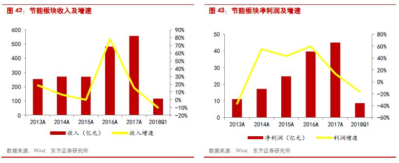分各個細分板塊看,水環(huán)境治理、監(jiān)測、再生資源等實現(xiàn)了較高的業(yè)績增速,行業(yè)景氣度較高,而傳統(tǒng)的大氣治理、節(jié)能板塊增速較低。同時,公司的兩極分化也日益明顯,競爭力較強的板塊龍頭,尤其是所處行業(yè)景氣度較高的龍頭企業(yè),收入和利潤增速顯著高于行業(yè)平均水平。