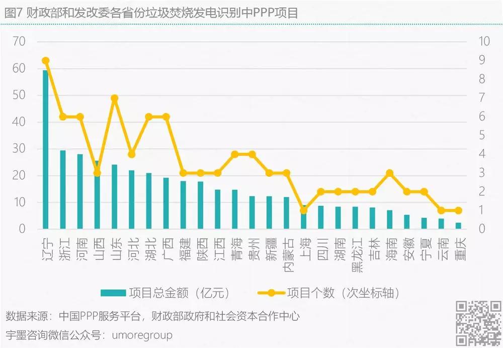 宇墨統(tǒng)計了財政部各省份PPP項目儲備庫中還在識別階段的垃圾焚燒發(fā)電類PPP項目以及發(fā)改委各省份垃圾焚燒發(fā)電發(fā)起中的PPP項目,目前來看這些項目還處于財政部門、發(fā)改委部門、行業(yè)主管以及社會資本共同判斷該項目本身是否與PPP模式相契合的階段,如果判定不契合將不會采用PPP模式。通過該數(shù)據(jù),可預(yù)先了解對于垃圾焚燒發(fā)電有采購需求的省份,綜合來看,遼寧、浙江、河南‘、山西、山東這五個地方在垃圾焚燒發(fā)電領(lǐng)域項目機遇較多。從項目發(fā)起地市來看,在一線城市發(fā)電廠建設(shè)逐漸飽和的情況下,目前垃圾焚燒發(fā)電的未來項目機遇多分布在國內(nèi)各省會的三四線城市。