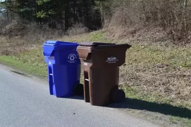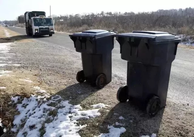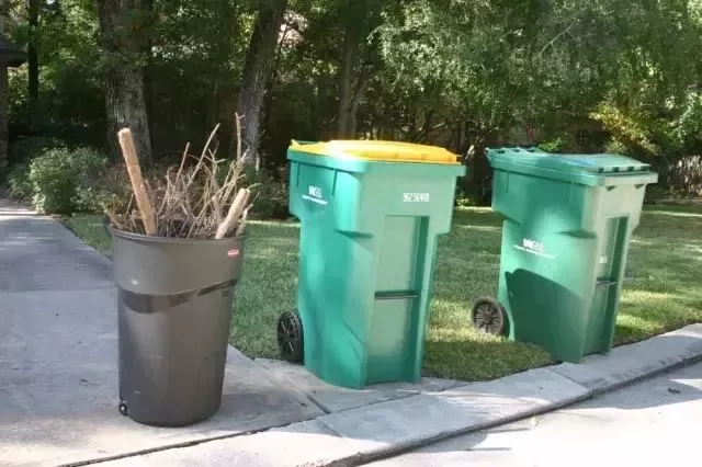 在美國(guó)鄉(xiāng)村,每家每戶都有一個(gè)帶輪子的垃圾箱,