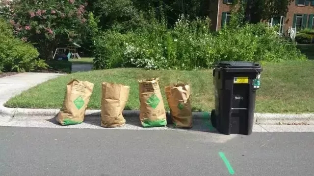 雜草與落葉由每個(gè)家庭成袋堆放在自家周圍。