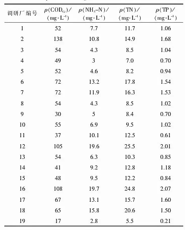 巢湖流域現(xiàn)有村鎮(zhèn)污水處理廠實際進水水質(zhì)調(diào)研結(jié)果