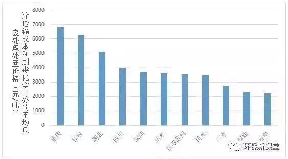 圖1.不完全統(tǒng)計(jì)各地危廢處理處置平均指導(dǎo)價(jià)