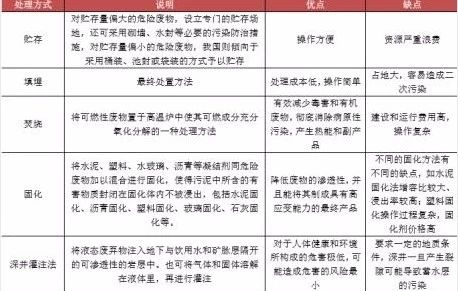 無(wú)害化處置包括物化、貯存、焚燒、填埋、固化、深井灌注法、海洋傾倒法、遠(yuǎn)洋焚燒法、土地耕作法等多種方法?,F(xiàn)階段我國(guó)主要采用焚燒和安全填埋兩種技術(shù)手段對(duì)危險(xiǎn)廢物進(jìn)行最終處置。相對(duì)資源化處置,這兩種方式都有較高的專業(yè)技術(shù)要求和環(huán)保要求,前期投入較高,投資回收期較長(zhǎng),較難吸引社會(huì)資本投資,主要由政府投資建設(shè),是目前較為緊缺的處置方式。隨著危廢管理政策趨嚴(yán),未來(lái)無(wú)害化處置的需求將進(jìn)一步提高,而掌握焚燒設(shè)施和填埋場(chǎng)的企業(yè)將在未來(lái)的行業(yè)競(jìng)爭(zhēng)中占據(jù)顯著優(yōu)勢(shì)。