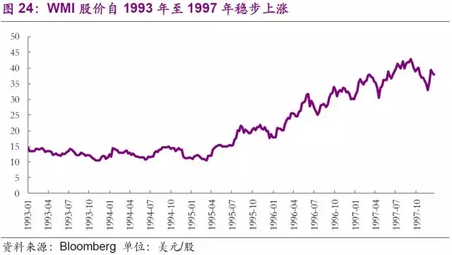 然而隨著以上業(yè)務(wù)過多的占用了公司的現(xiàn)金流,且利潤率并不理想,帶動公司營業(yè)收入在1997年整體走低。雖然公司在1997年更名回到WMI,表明公司將聚焦主業(yè),并且計劃變賣掉25億美元的非核心且表現(xiàn)不佳的資產(chǎn),但是當(dāng)年多達(dá)11.8億美元的虧損已經(jīng)為公司次年被收購埋下了隱患。