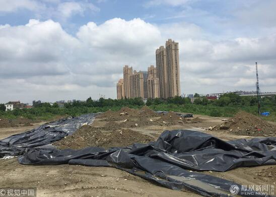 2018年5月26日,武漢,正在進(jìn)行中的硚口1135片地塊土壤污染修復(fù)治理工程現(xiàn)場(chǎng)。供圖:楚林/視覺(jué)中國(guó)
