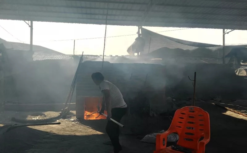 一是生產(chǎn)工藝設(shè)備十分簡(jiǎn)陋。督察組抽查了恒豐冶煉廠、欽州強(qiáng)勁冶煉廠、311省道旁無名鐵合金廠、黃屋屯鎮(zhèn)大橋礦品廠等4家鐵合金冶煉廠,企業(yè)以錳礦為原料生產(chǎn)富錳渣和生鐵,其主要生產(chǎn)裝備設(shè)施均為國(guó)家明令淘汰的小高爐,其中3家鐵合金廠小高爐僅有13立方米。廠區(qū)基本沒有像樣的廠房及相關(guān)附屬設(shè)施,更無有效的生產(chǎn)控制設(shè)施和人工防護(hù)裝備,露天生產(chǎn),工藝粗放。
