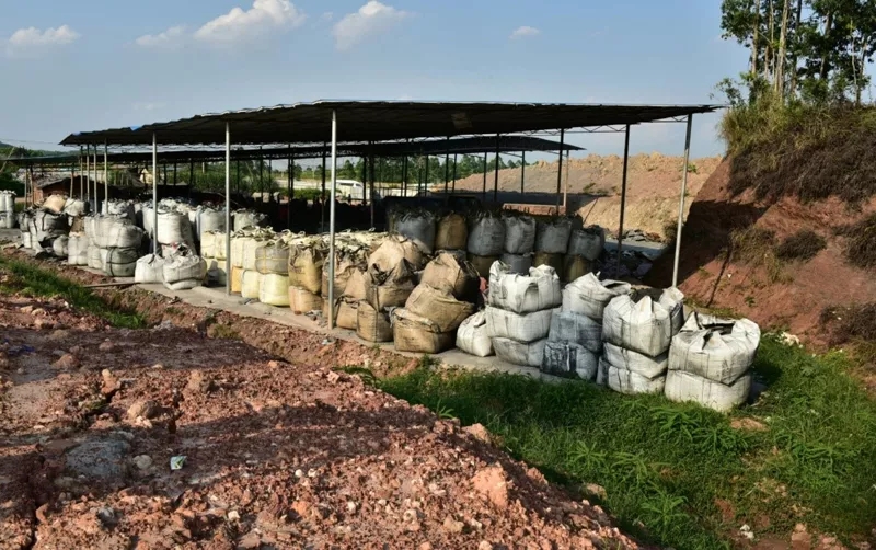 倉(cāng)庫(kù)內(nèi)堆放大量袋裝鋁灰