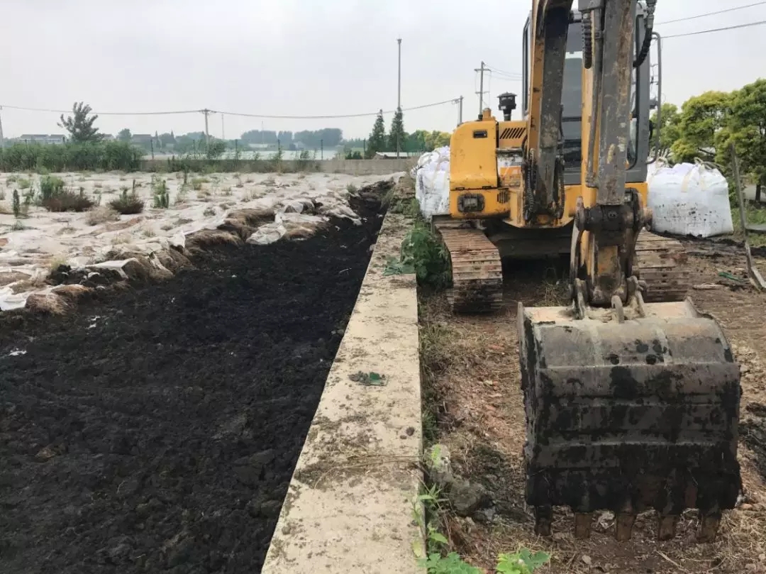 督察人員在南池西側(cè)看到停著一臺(tái)小型挖掘機(jī),幾十袋包裝好的污泥擺放在旁邊。泰興市工作人員介紹,正在將少量含水率較低的污泥裝袋,運(yùn)到危廢儲(chǔ)存場(chǎng)所暫存,最終安全處置。但是從現(xiàn)場(chǎng)情況看,挖掘工作才剛剛開始。