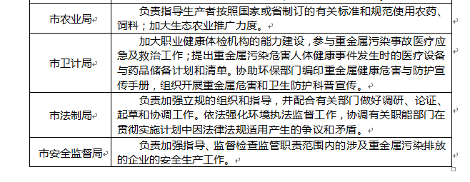 8. 重金屬污染綜合防治市有關(guān)目標職責(zé)分工