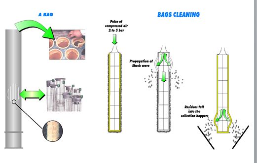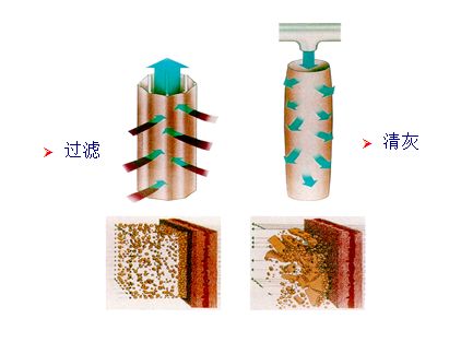 布袋除塵器型式為下進氣、外濾袋、脈沖噴吹清灰;
