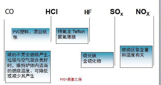生活垃圾焚燒產(chǎn)生的煙氣含有氯化氫、二氧化硫、氮氧化物、 硫化氫、一氧化碳、重金屬、飛灰、二噁英等有害物質(zhì)。