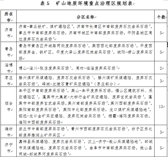 山東省礦山地質環(huán)境保護與治理規(guī)劃