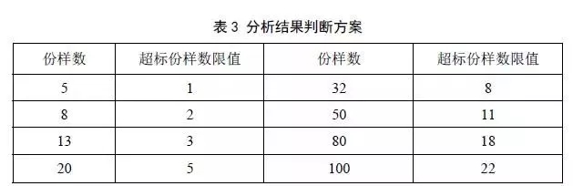7.1在對(duì)固體廢物樣品進(jìn)行檢測(cè)后,如果檢測(cè)結(jié)果超過GB5085.1、GB5085.3、GB5085.4、GB5085.5和GB5085.6中相應(yīng)標(biāo)準(zhǔn)限值的份樣數(shù)大于或者等于表3中的超標(biāo)份樣數(shù)限值,即可判定該固體廢物具有該種危險(xiǎn)特性。