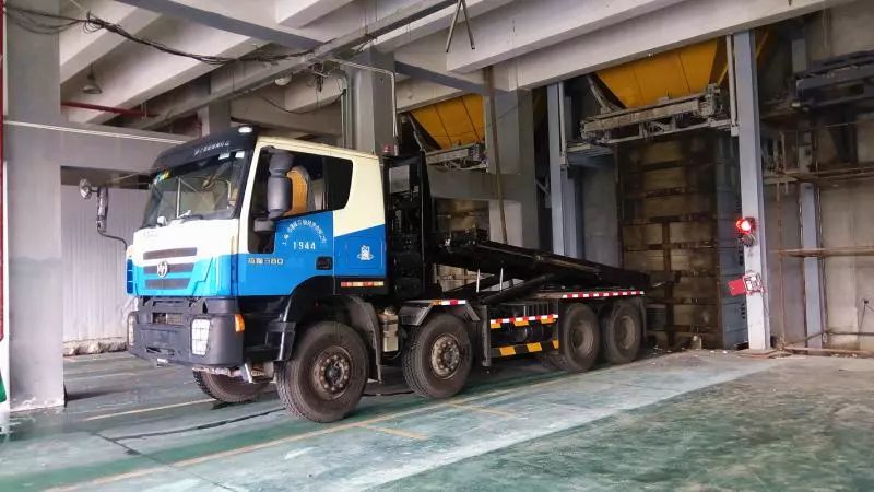 ⑨集裝箱塞滿垃圾后,將被放置到集運(yùn)卡車上