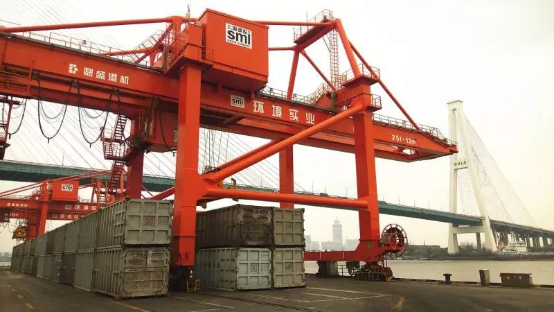 ⑩靈活的舉臂車可以鉗住垃圾集裝箱,將它們在碼頭邊堆疊起來,方便吊車運(yùn)至集運(yùn)船上