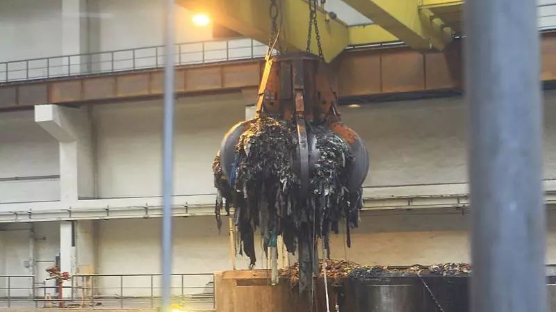 ?強(qiáng)有力的抓斗在待焚燒庫區(qū)內(nèi)靈活調(diào)度