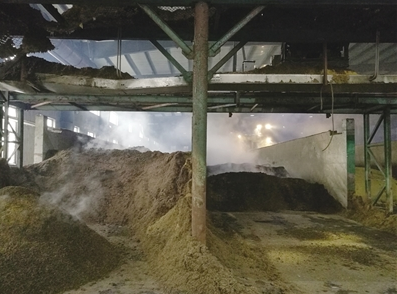 此外,課題針對污水污泥好氧發(fā)酵升溫周期長、調(diào)理劑用量大的問題,開發(fā)了基于生物預發(fā)酵的瀝浸污泥好氧發(fā)酵優(yōu)化技術(shù),通過生物預發(fā)酵改善污泥微生物種群結(jié)構(gòu),調(diào)整堆肥調(diào)理劑組成結(jié)構(gòu),優(yōu)化好氧發(fā)酵通風過程,改善篩分和熟料回流方式,促進污泥中有機質(zhì)的降解和生物熱釋放。建設的污水污泥集中處置示范工程,將好氧發(fā)酵升溫周期縮短,減少了調(diào)理劑用量,可提高好氧發(fā)酵工藝效能。