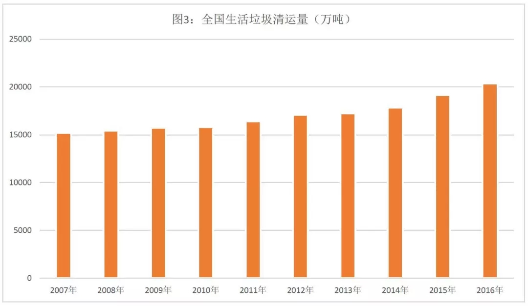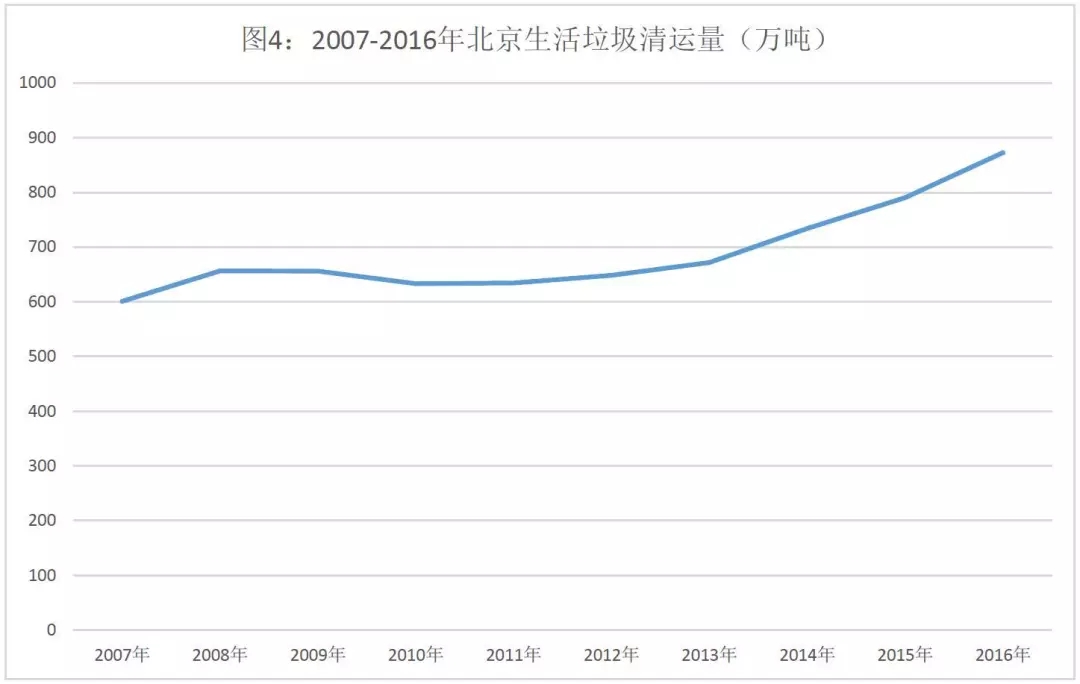 以北京為例,2007-2016年十年間,生活垃圾清運(yùn)量增長(zhǎng)了45%,同期人口數(shù)量增長(zhǎng)29.7%,遠(yuǎn)低于垃圾清運(yùn)量的增長(zhǎng)??梢?jiàn),北京市居民最能“掙錢(qián)”,同時(shí)產(chǎn)生垃圾的能力在不斷的“增強(qiáng)”。